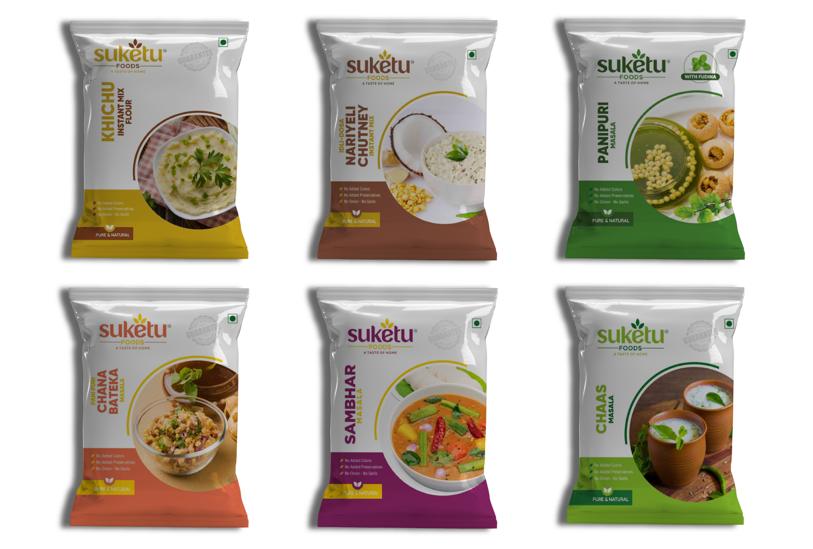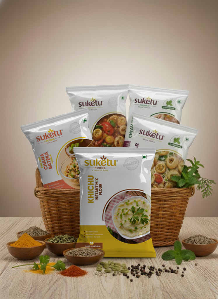 We make fresh homemade masalas and instant mixes with pure, natural ingredients. Our products include tasty mixes like Chaas Masala, Panipuri Masala, Khichu Instant Mix Flour, and Idli-Dosa Nariyeli Chutney